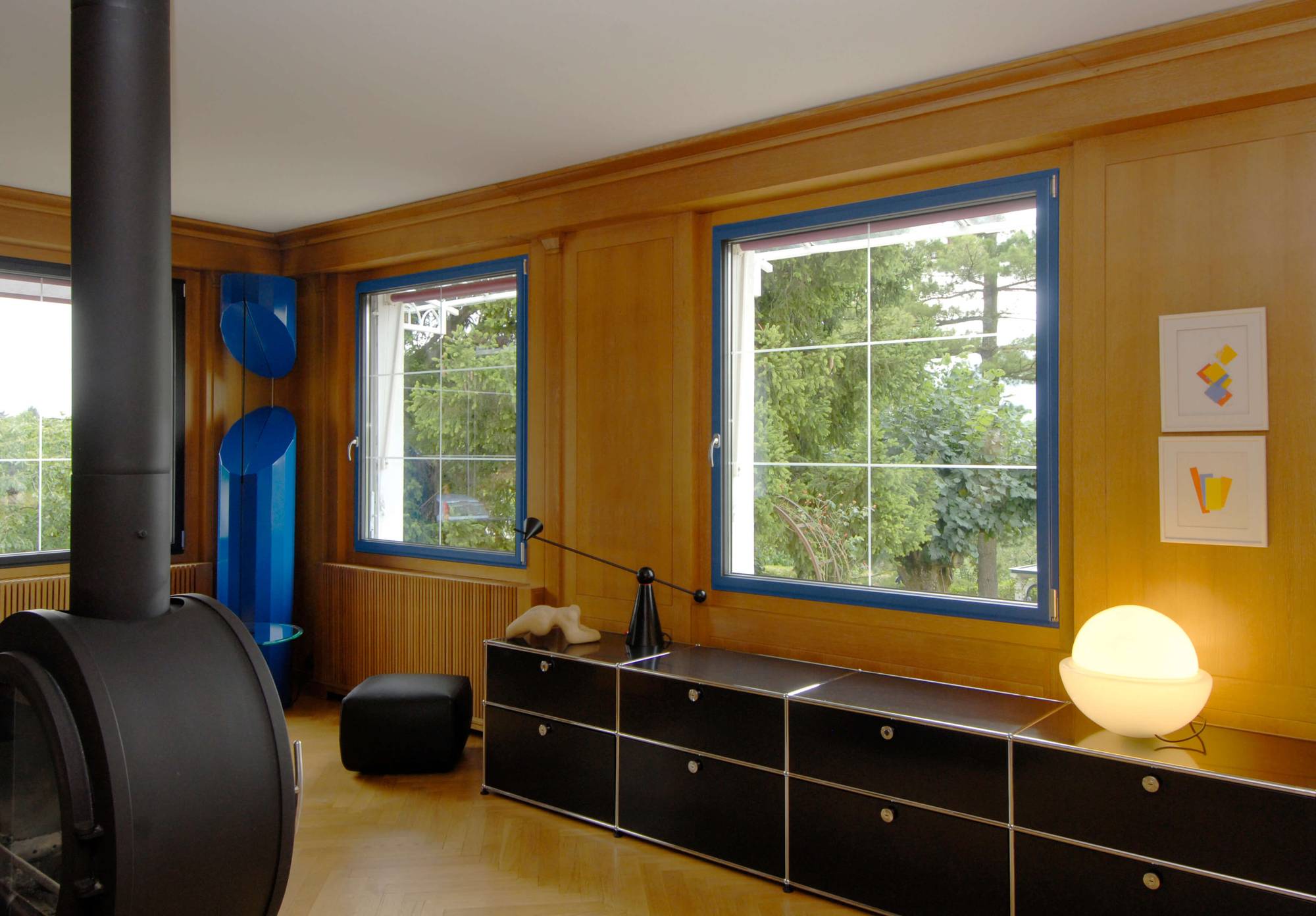 On s’aperçoit que 80% des fenêtres ou portes sont blanches (*). Or nous, en tant que décorateurs, nous pouvons combattre cette tendance en proposant par exemple des menuiseries jaunes, associées à de l’alu. C’est du plus bel effet. Cela apporte tout de suite un côté gai à la pièce, propice à la bonne humeur. Mettre de la couleur pour souligner une boiserie donne tout de suite un côté architectural à la pièce. Cela dégage les murs clairs, l’œil apprécie le contraste, on se sent donc bien.
