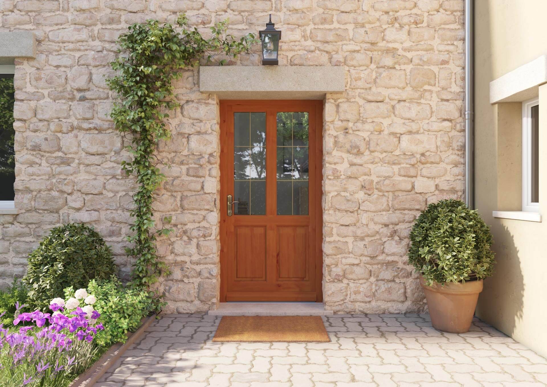 Porte d’entrée Bois semi-vitrée Tilia La solidité naturelle du bois et un design artisanal raffiné pour une porte d'exception.