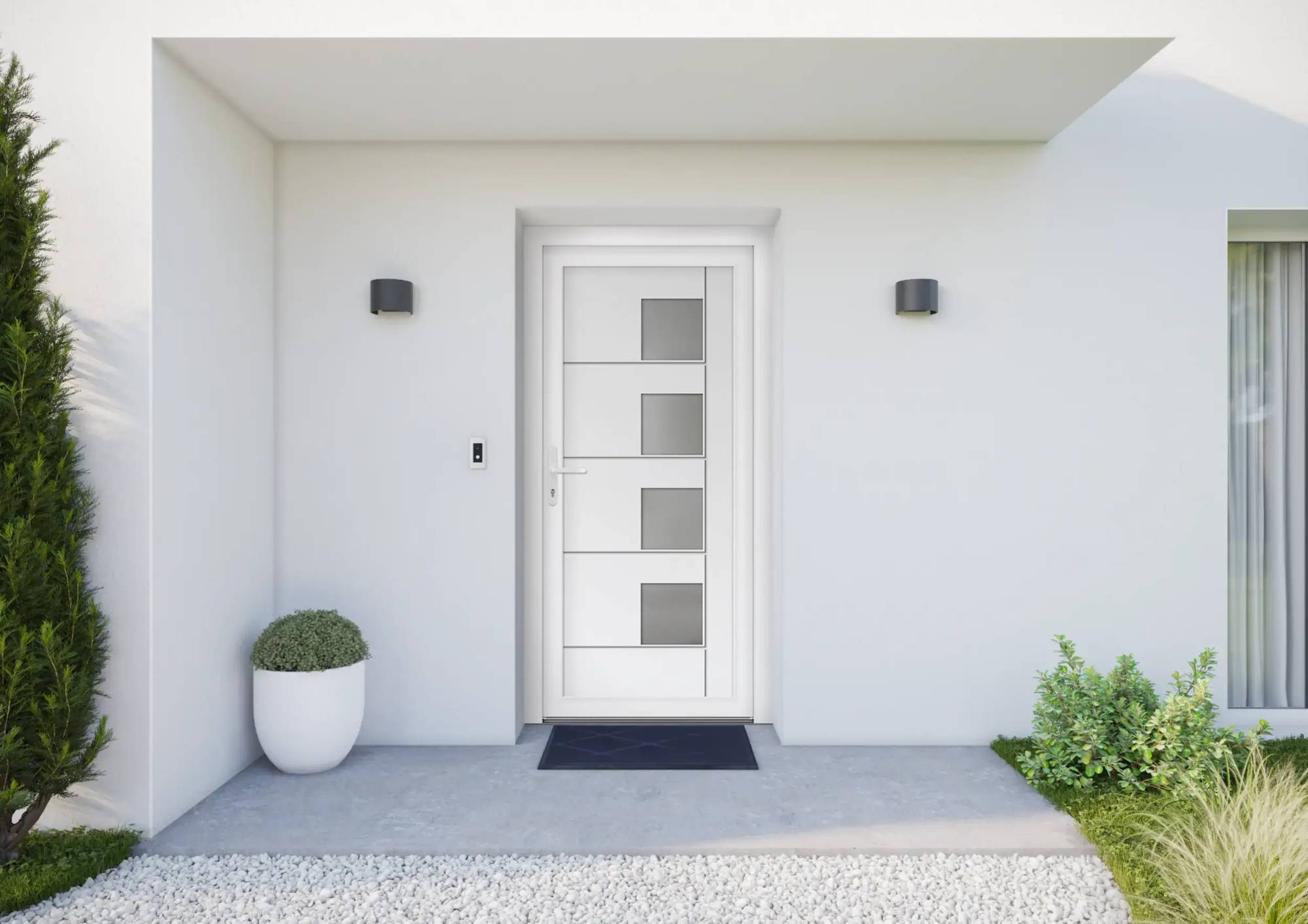 Sécurité et fiabilité sont au rendez-vous avec nos portes d'entrée en PVC semi-vitrées : leur construction robuste et leur système de verrouillage hautement performant garantissent une protection maximale pour votre maison.